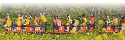 重庆市北碚区歇马街说念虎头村,青少年们乘坐小火车感受乡村旷野之好意思,乐享春日假期。 秦廷富摄