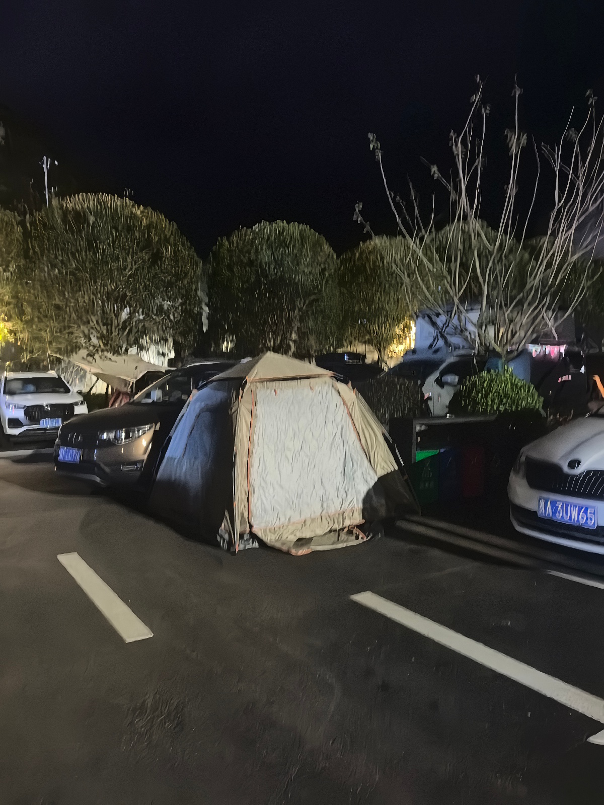10月2日凌晨4时,九派新闻在花江峡谷大桥不雅景点—云渡就业区看到,现地点有泊车位已满,不少车辆停在说念路两侧,好多游客在车旁搭起了帐篷睡眠,偶尔还有稀零车辆驶入就业区寻找车位。