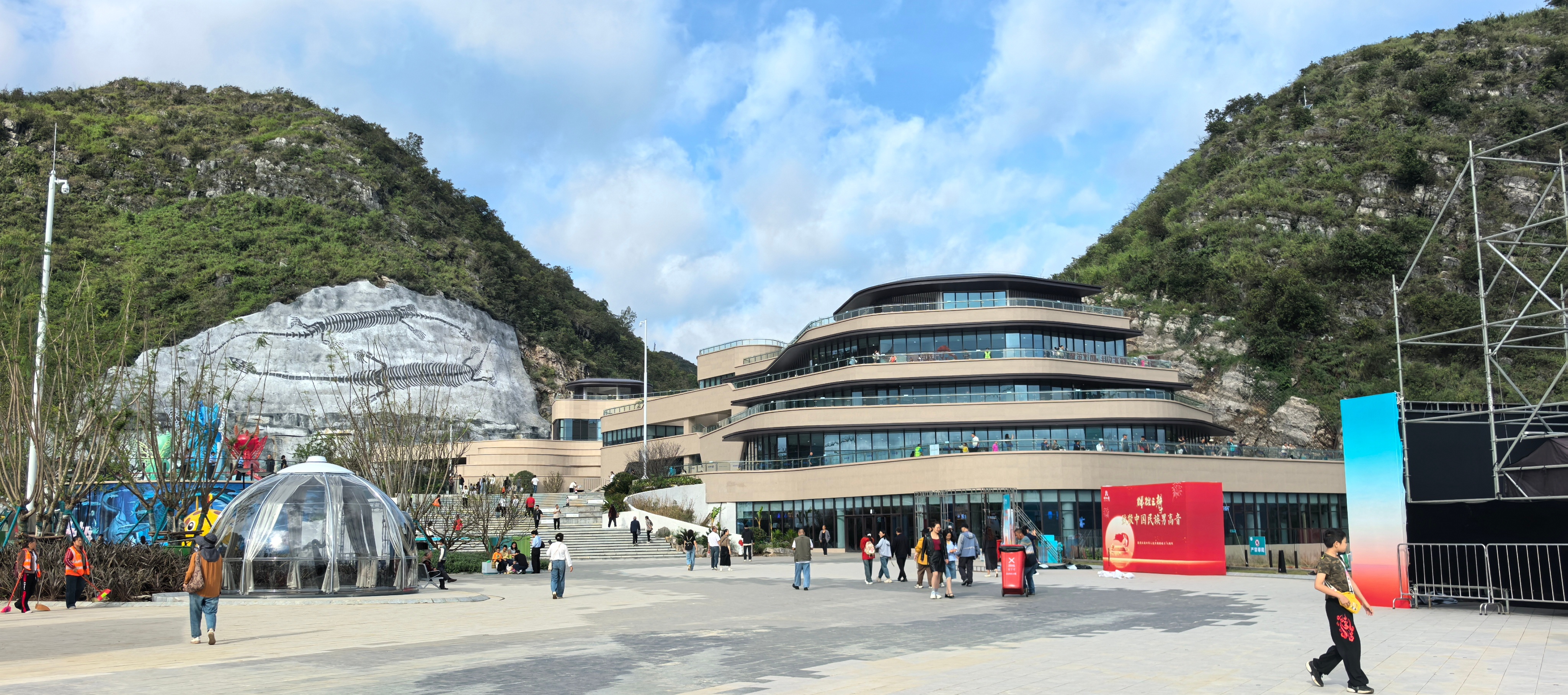 云渡就业区不仅有餐饮、商店,还配置了婚配登记处。安顺市贞丰县民政局先容,为不时得志东说念主民各人对高品性成亲登记业务条件,丰富婚恋体验,构建婚俗纠正新场景,经当地县政府商议甘心,决定栽种“贞丰县民政局花江峡谷大桥婚配登记巡回点”。