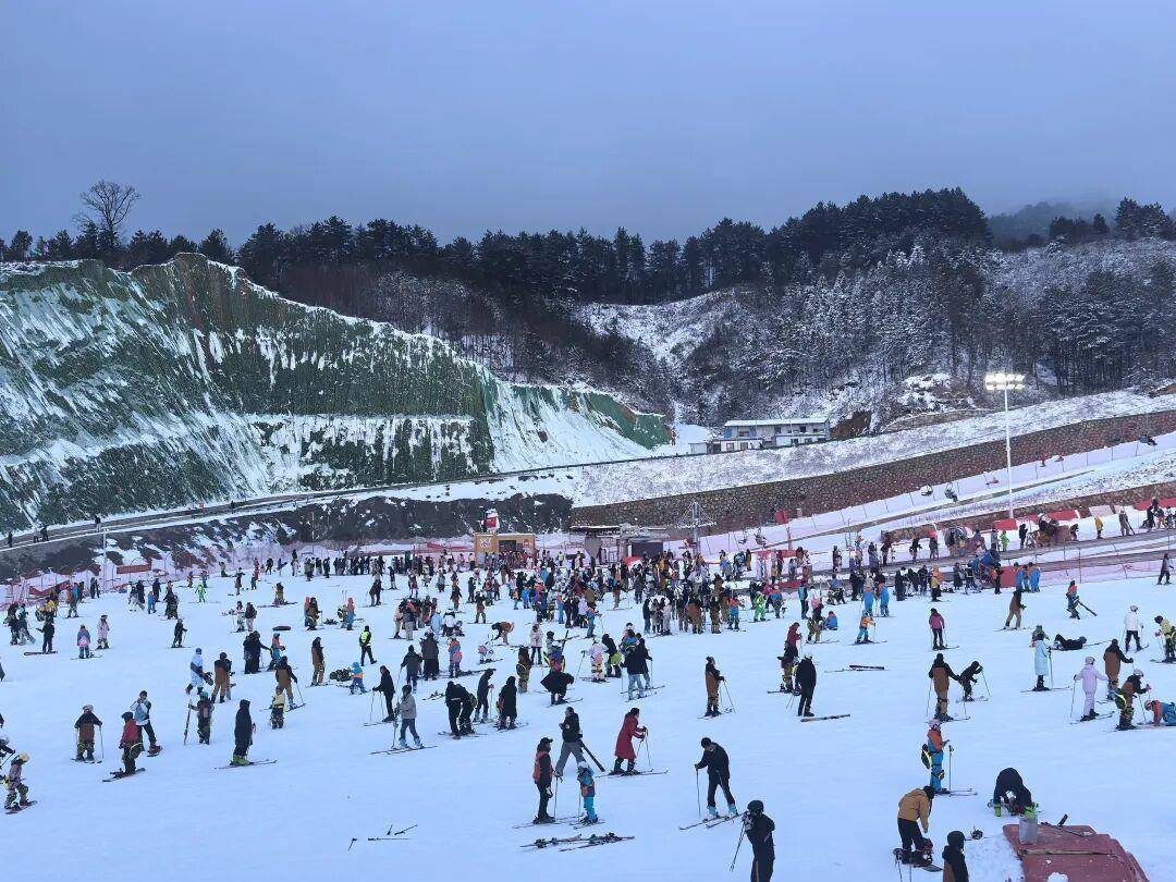 黄冈英山桃花冲滑雪场迎来无数雪友
