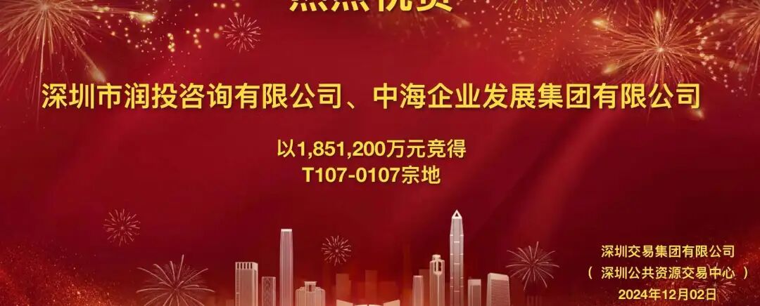 本日下昼三点,深湾宅地(宗地号T107-0107)举行拍卖行径,肇端价为126.52亿元,招商和华润+中海聚会体竞争该地块开云体育(中国)官方网站,共竞价295轮,最终华润+中海竞得该地块,总价185.32亿元,楼面地价约7万元/平米。
