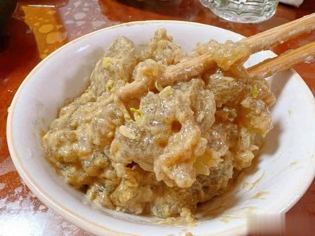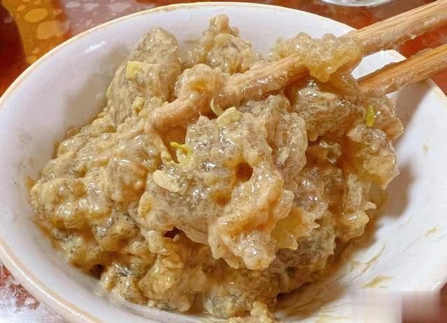 持几大勺红薯淀粉倒进碗里,冉冉加水,用筷子不断地搅动,看着白色粉末在水里打转,逐步化成乳白色的浆液,搅动到莫得颗粒,顺滑得像丝绸不异,这第一步就成了。