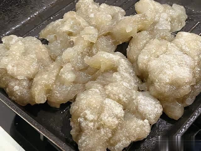 锅里刷层油,无须多,薄薄一层就行,把调好的红薯淀粉液倒进去,小火冉冉煎,等着它从白色造成透明,一面定型了再翻个面,比及整块都变得晶莹彻亮,跟块巨流晶似的,就不错出锅了。