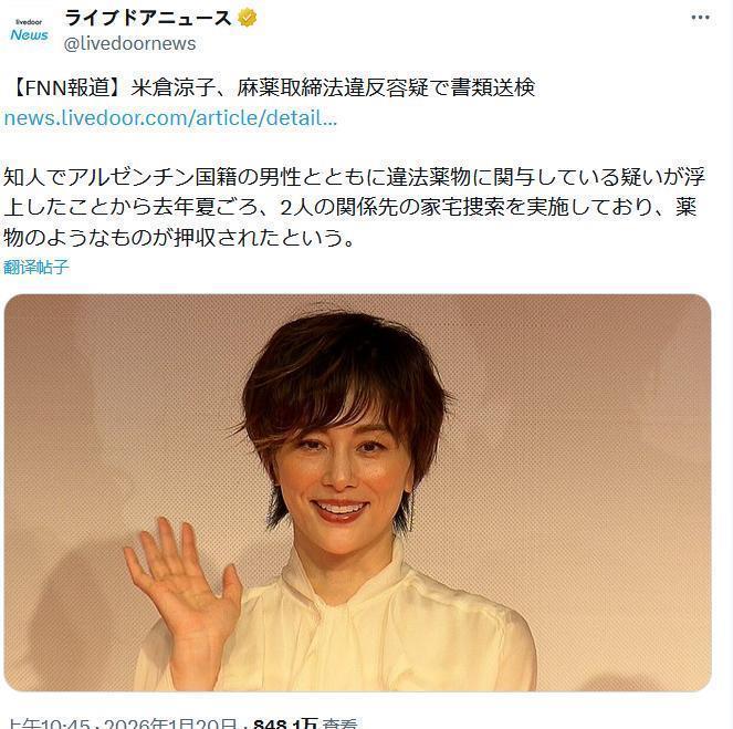 讯息称,这次因涉嫌违背麻药取缔法被送检的涉案东说念主员,恰是女演员米仓凉子。