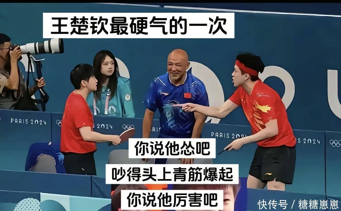 有一次直播,大家都说莎莎的脸没以前那么圆了,王楚钦立马无情了不同主意,他对着莎莎非得来一句:“你那正手反拉的时候,那俩脸蛋都是duang duang的。 ”成果果然如斯,他又得益了莎莎的冷眼。