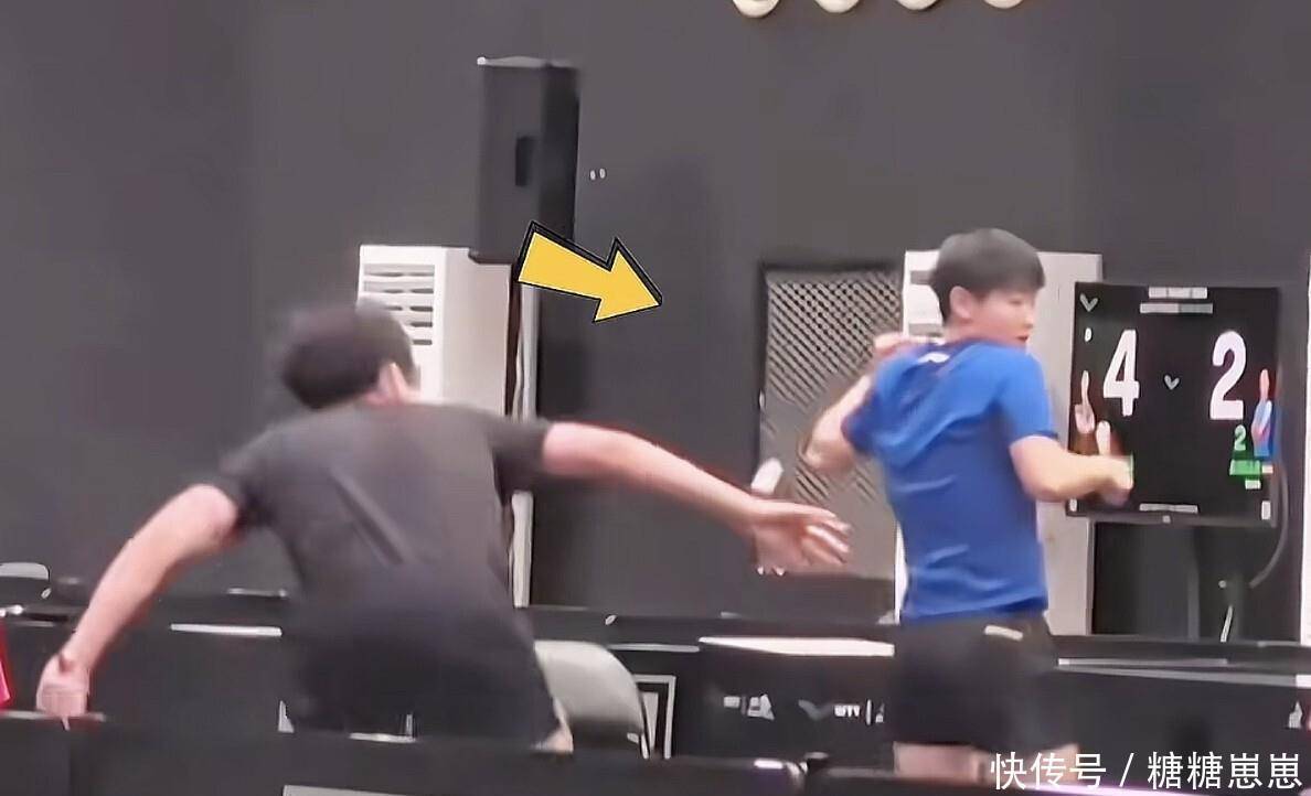 考验馆里王楚钦主动加练接孙颖莎最桀黠的发球