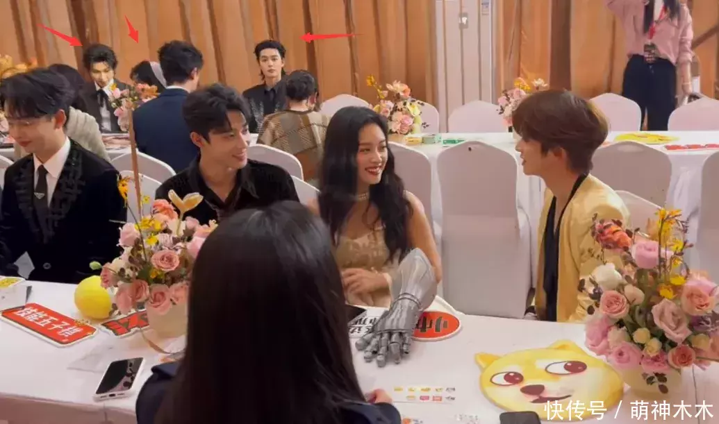 红毯行将开动时,主理方为艺东说念主准备了休息室。从直播镜头能看到,后台看似其乐融融,但其实卖身投靠。拍长剧和脱口秀的艺东说念主们,透顶聚在前排几张桌子。而短剧艺东说念主被分拨到终末一行,且全程和其他明星零相易。