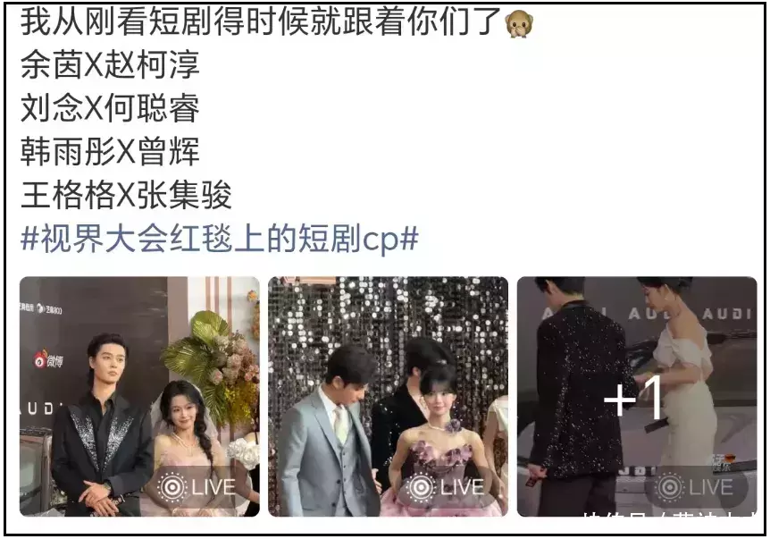 此次参加当作的艺东说念主有柯淳、余茵、韩雨彤、曾辉、何聪睿等东说念主,个个王人是短剧界的顶流,也王人有各自的代表作。为了参加当作,他们王人挑升请了造型师,盛装亮相。可是在星光文雅的当作现场,他们若干显得有些阴郁了,且连主理方王人不太介意他们。