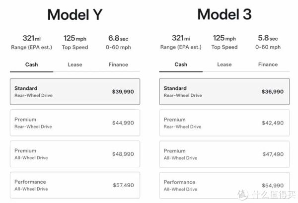 当今国内 Model 3 低价版价钱还并未公布,但我们不错从好意思国在售的价钱对比来进行参考: