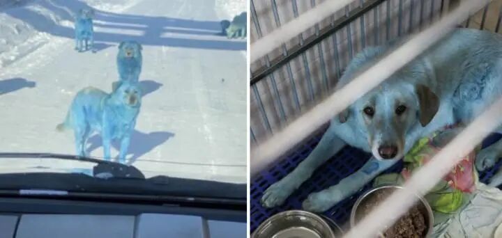 2021年,俄罗斯捷尔任斯克市的住户发现一群亮蓝色的狗在一家放胆化工场隔壁的街谈上闲荡。它们既莫得长触手,也不会辐射激光,就利弊常平时的流浪狗。后续造访发现即是它们当作阿谁放胆化工场的硫酸铜暴露后,这些狗在上头打滚导致的。